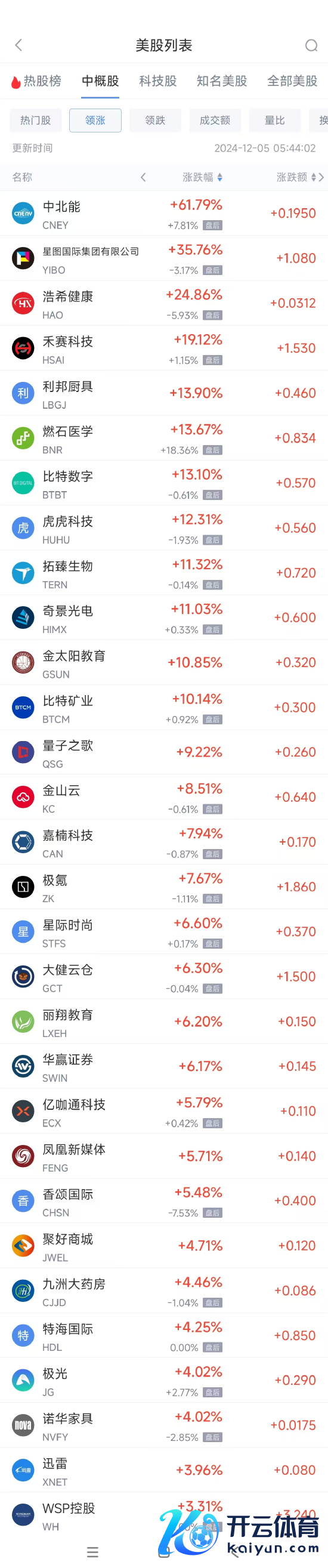 领涨中概股列表: