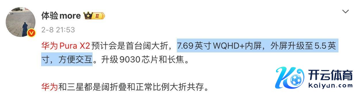 如今机圈体育游戏app平台,还肯在缱绻形态上玩改进的,大略也就只剩华为了。 凭据爆料,华为本年的新机,如故会带来不少花活,预测有行业首款阔屏大折叠、大伙总结犹新的阔屏直板机,还有一台超大屏 Air。 昨年,华为推出了一款 Pura X。这是行业首款阔屏小折叠,禁受 6.3 英寸内屏,搭配 16:10 的比例。特别特殊义,卖得也很好。 掐指一算,距离第二代发布应该也不远了。 而凭据现存爆料来看,本年的华为 Pura X2 要换新形态,将切到阔屏大折叠赛说念。预测禁受 7.69 英寸 WQHD+