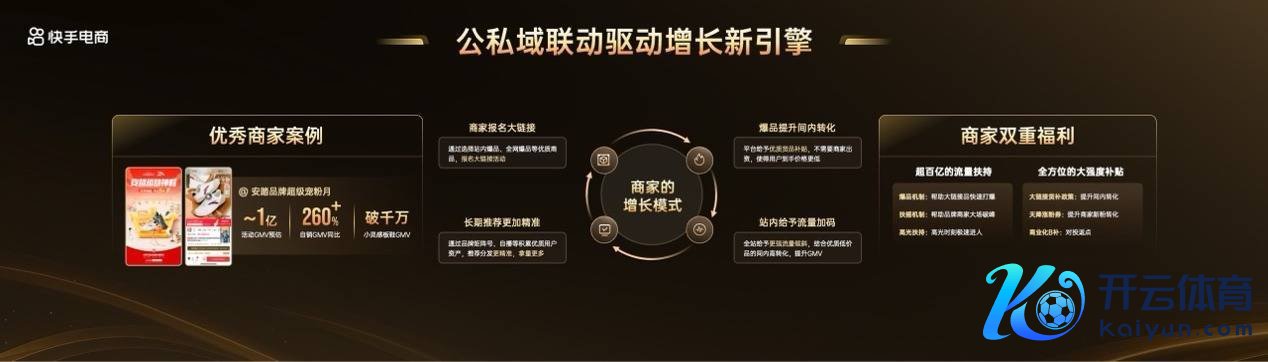 刻下,电商行业竞争日益横蛮,快手电商通过证据的政策支持、完善的束缚体系、高效的流量机制与智能的居品器具,为服务商搭建精深的发展平台,也为服务商应答阛阓挑战、完结笃定性增长提供了有劲守旧。但愿服务商跟紧要领,充分运用平台提供的资源与支撑,聚焦品牌与产业带两大中枢处所开云(中国)kaiyun网页版登录入口开云体育,优化流量运营与服务身手,完结与平台、商家的三方共赢。