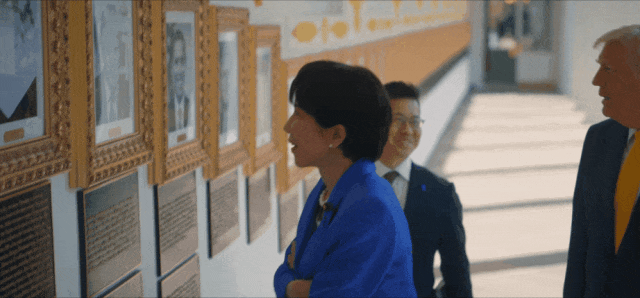 归正,视频披露,进程白宫“总统星光大路”走廊时,一看到特朗普的像片,高市两眼放光,伸出双臂,张大嘴巴。