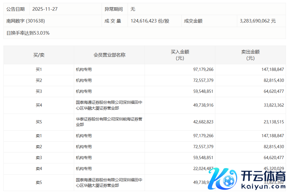 南网数字:全天换手率达53.03%,4机构共计净卖出8863.48万元南网数字:全天换手率达53.03%,4机构共计净卖出8863.48万元
